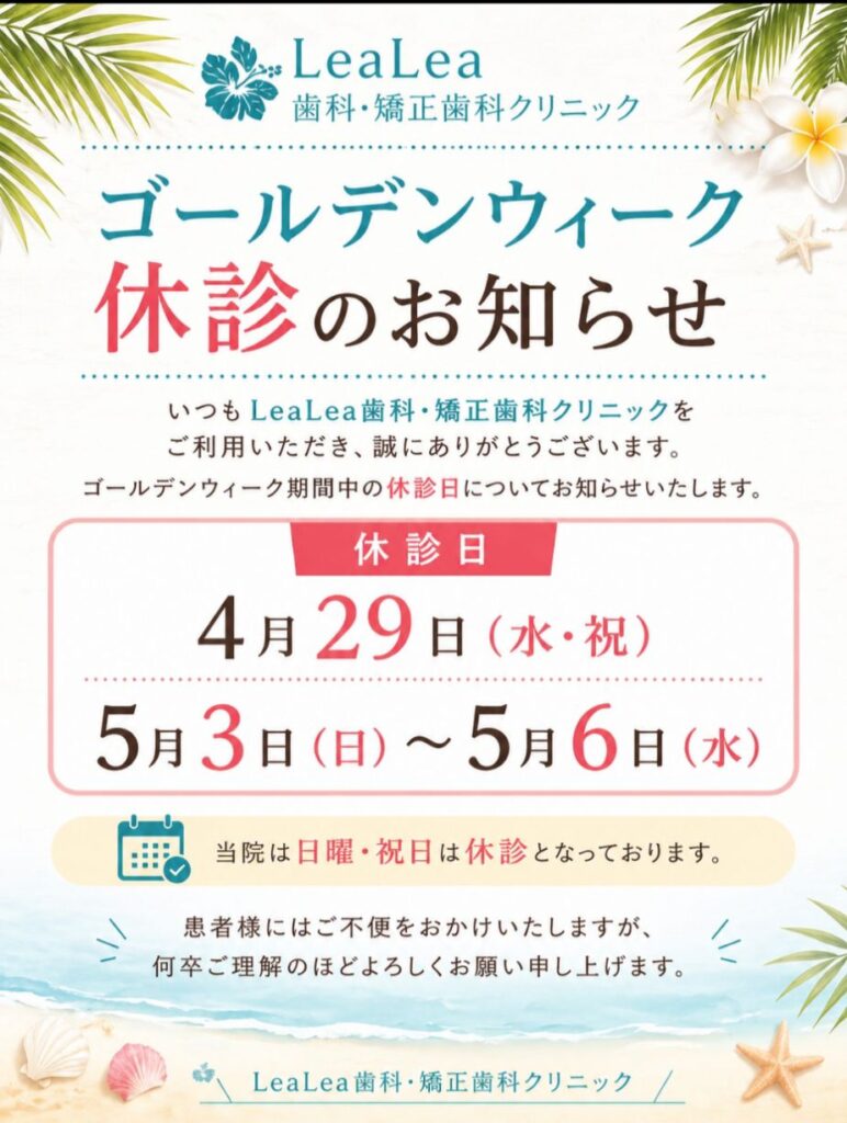 LeaLea歯科・矯正歯科クリニックは、ゴールデンウィーク期間中に休診日がございます。